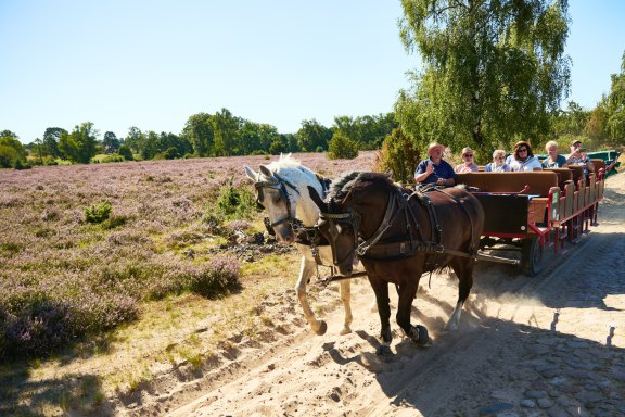 Nach dem Mittagessen im Undeloher Hof starten Sie zu einer ca. 2,5-stündigen Kutschfahrt durch die schöne Heidelandschaft. Die Strecke führt vorbei an Birken, Bienenzäunen, Wacholder und einem Heidschnuckenstall nach Wilsede. Wir bringen Sie direkt in das Zentrum des alten